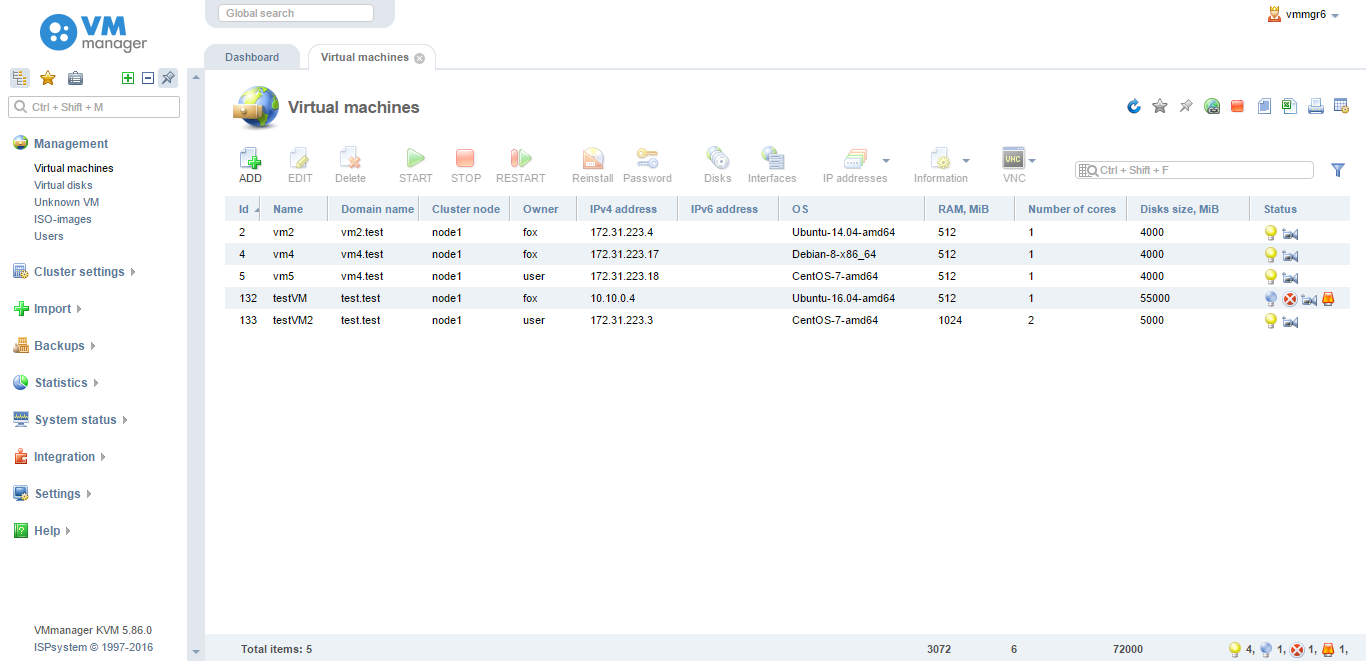 VM Manager is basically a GUI (web user interface) for server virtualization management in OpenVZ and KVM. It allows users to create virtual machines and manage them using all of VM Manager functions. With VM Manager it is easy to offer VPS servers to customers and using seamless integration with popular billing software such as WHMCS or HostBill app will give you flexibility. VM Manager operates on OpenVZ or KVM hypervisors.